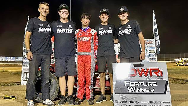 (7/1/23) Gavin Miller would recover from the previous night's miscues to perfection by parking in Lake Ozark Speedway victory lane on Saturday Night with the POWRi National and West Midget League, capturing his first career league victory by leading seven laps in an action-packed twenty-five lap feature event.