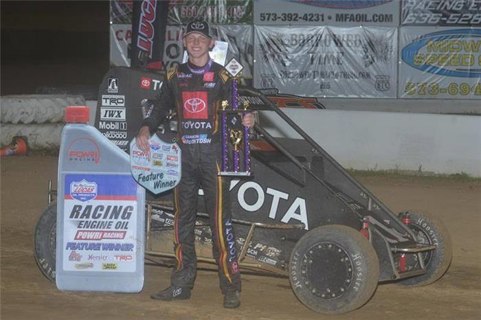 Eldon, MO (06/12/2020) After clinching the win on the final night of the Turnpike Challenge at Port City Raceway, Cannon McIntosh picks up where he left off by dominating Night #1 at Lake Ozark Speedway. This is McIntosh’s second career POWRi Lucas Oil National Midget victory.