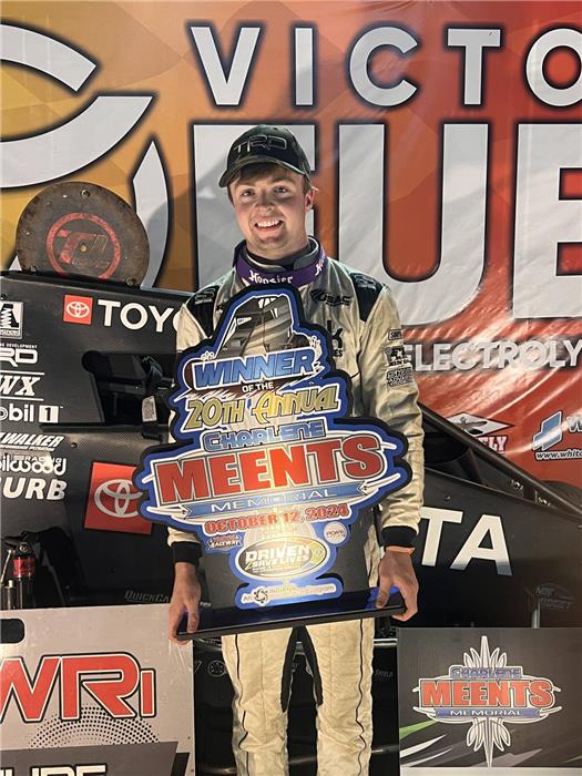 Tulsa, OK. (10/12/24) Jacob Denney would lead early and recover late using a last lap pass to earn his third career feature win battling at Port City Raceway, with the POWRi National and West Midget Leagues, in Night Two of the Rujo Rumble after leading eight laps of the thirty-lap feature event honoring an industry icon in the 20th Annual Charlene Meents Memorial presented by Driven2SaveLives.